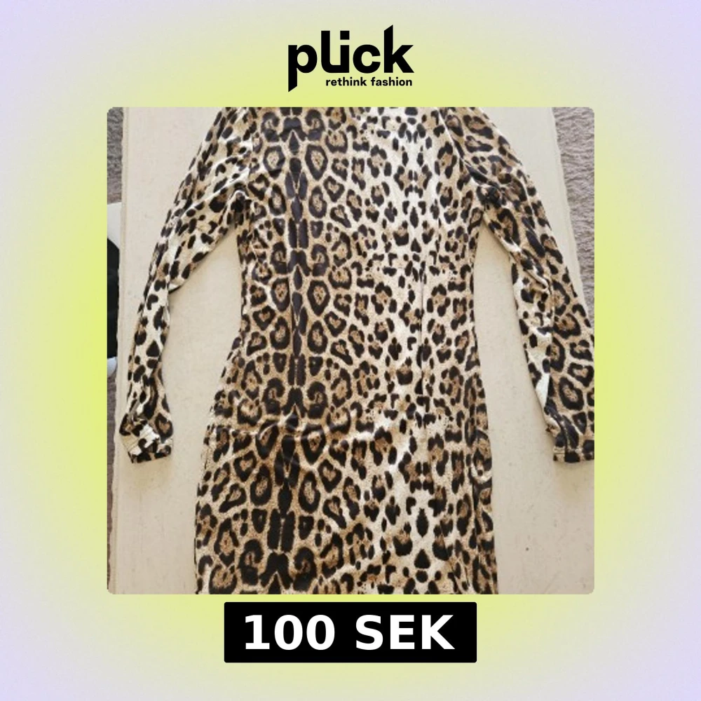Snygg leopardmönstrad klänning från SHEIN i storlek L. Klänningen har långa ärmar och är figurnära med kort längd. Materialet är mjukt och stretchigt, perfekt för dig som vill sticka ut med ett djurmönster.