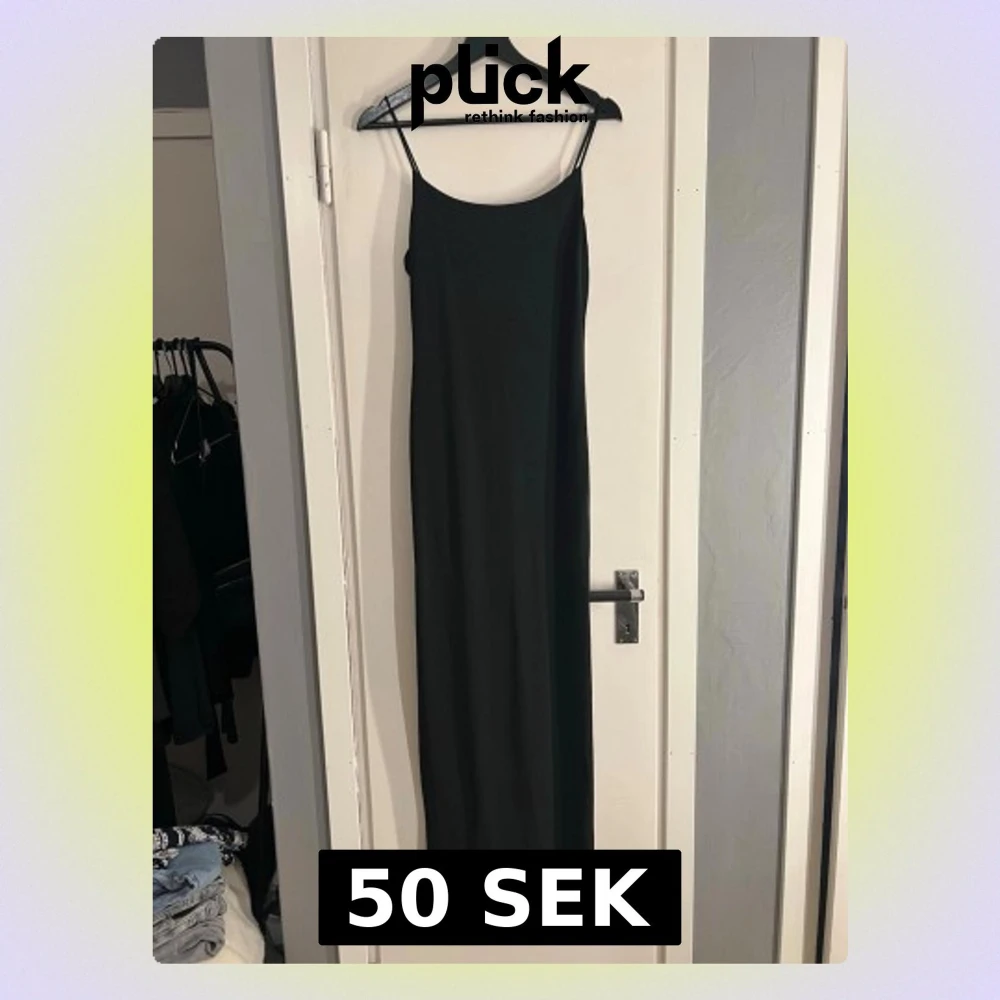 Svart långklänning med slits bak. Justerbara axelband. Köpt begagnad men aldrig använd hos mig. Storlek S.