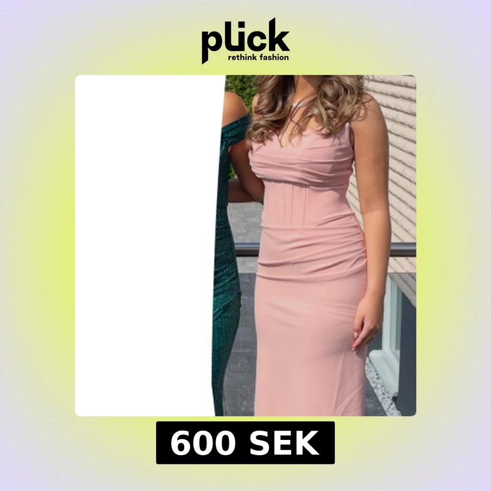 Supersnygg ljusrosa långklänning med figurnära passform och v-ringad överdel. Endast använd under en kväll och är praktiskt taget i nytt skick, perfekt för bal eller annat event 😻 storlek S