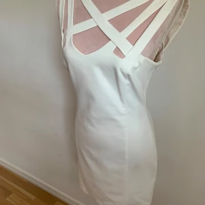 Vit tajt korsad klänning - Super skön. Aldrig använd. Rebecca Stella och Linn Ahlborgs klänning.