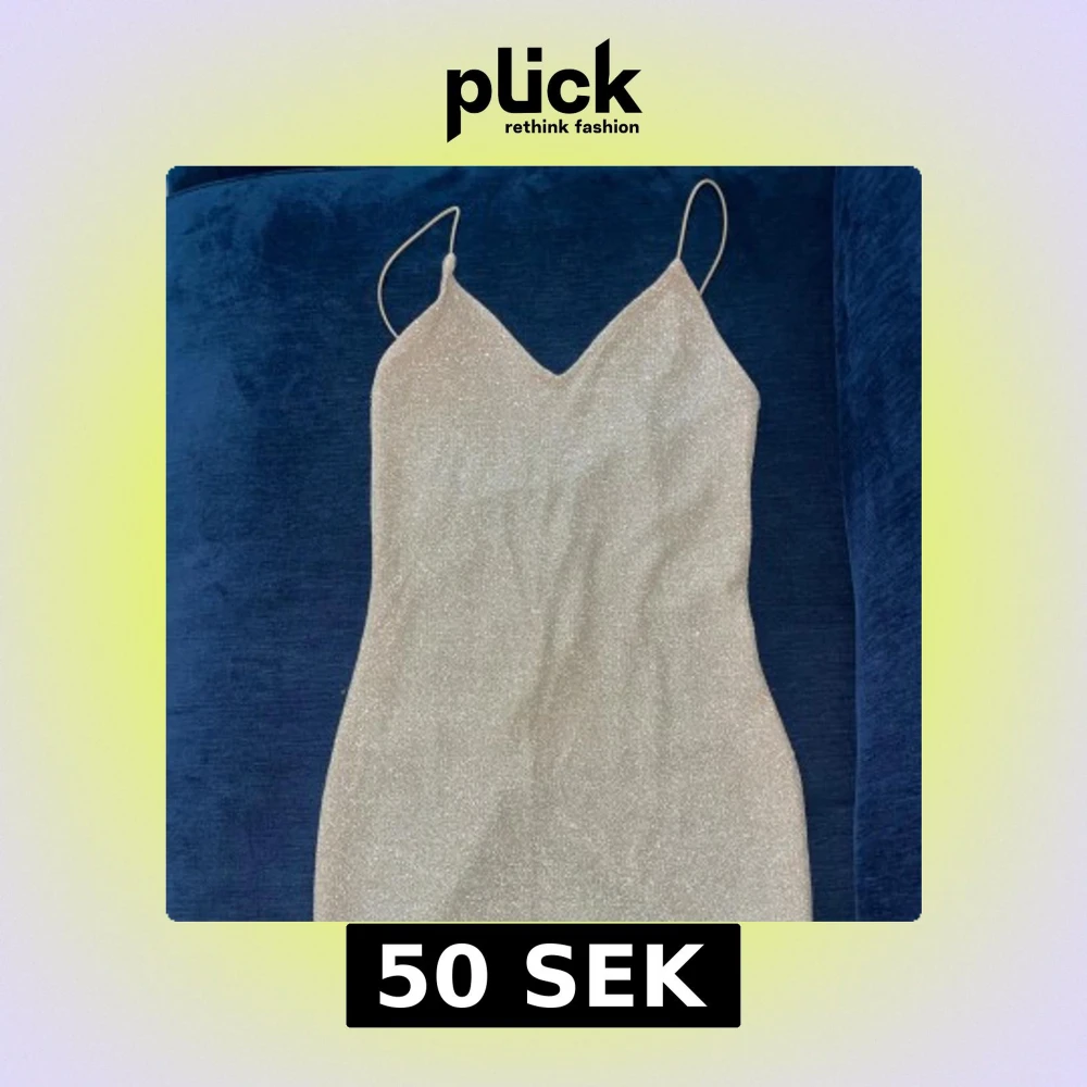 Supersnygg glittrig kortklänning i champagnefärg med tunna axelband och v-ringning. Klänningen har en figurnära passform och korsade band i ryggen. Perfekt för dig som vill sticka ut med en elegant och trendig look.