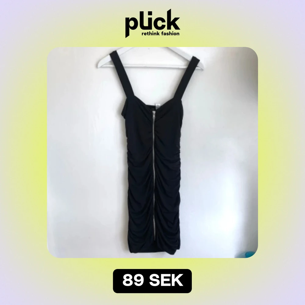 Svart figurnära miniklänning från H&M Divided. Elastiskt rynkat material, silverfärgad dragkedja. Mått i cm: bröstvidd 34; längd fram från axeln 79.