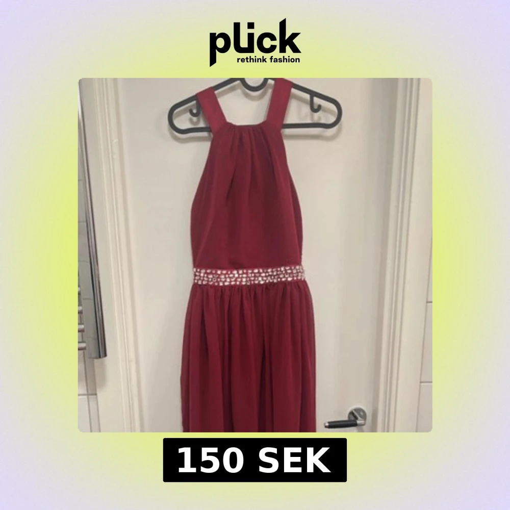 Säljer en vinröd långklänning med breda axelband som korsas i ryggen och markerad midja med strassdetaljer. Klänningen har ett elegant fall och är perfekt för bal eller fest. Materialet känns mjukt och har ett fint skimmer. OBS har en missfärgning på en av banden där bak!!