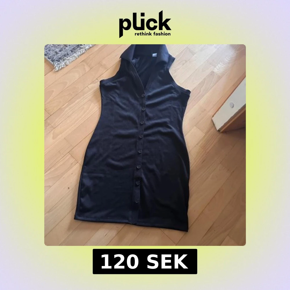 Svart ärmlös skjortklänning med krage och knappar hela vägen framtill. Klänningen har en tight passform och är tillverkad i ett mjukt, ribbat material som ger en snygg siluett. Perfekt för dig som gillar minimalistisk och stilren look.
