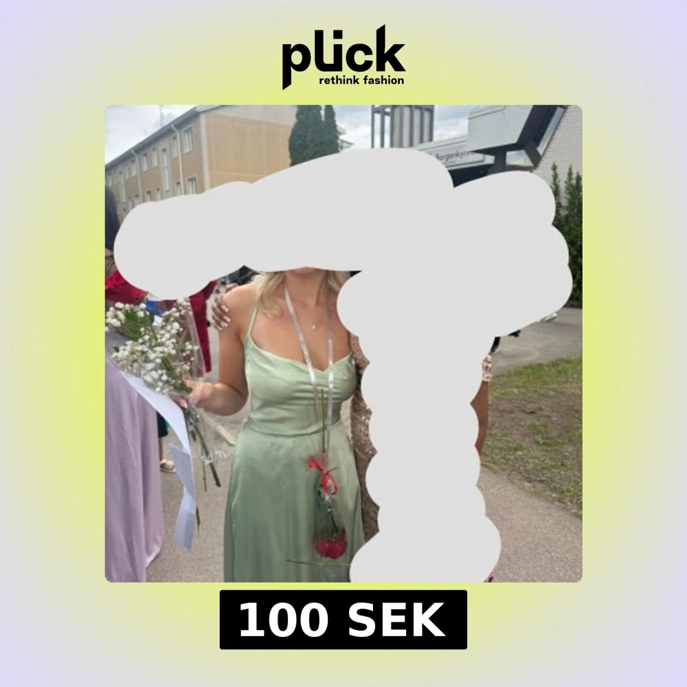 Elegant ljusgrön silkes klänning med smala axelband och slitt. Den går ner till golvet och har en fin snörning i bak. Perfekt till skolavslutning och bal. Skriv om de är några frågor eller vill ha fler bilder💕💕Den är använd 1 gång