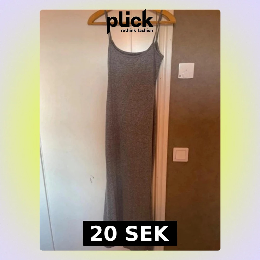 Säljer en enkel och stilren grå långklänning med smala axelband. Klänningen har en rak passform och ärmlös design, perfekt för varma dagar eller att styla med en jacka.