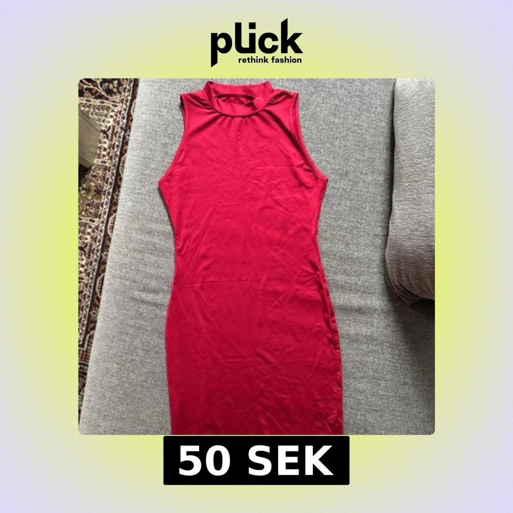 Säljer en snygg röd klänning med hög hals och ärmlös design. Klänningen är tight och har en enkel, stilren look som passar perfekt när du vill sticka ut. Mjuk och stretchig känsla i materialet för en bekväm passform.