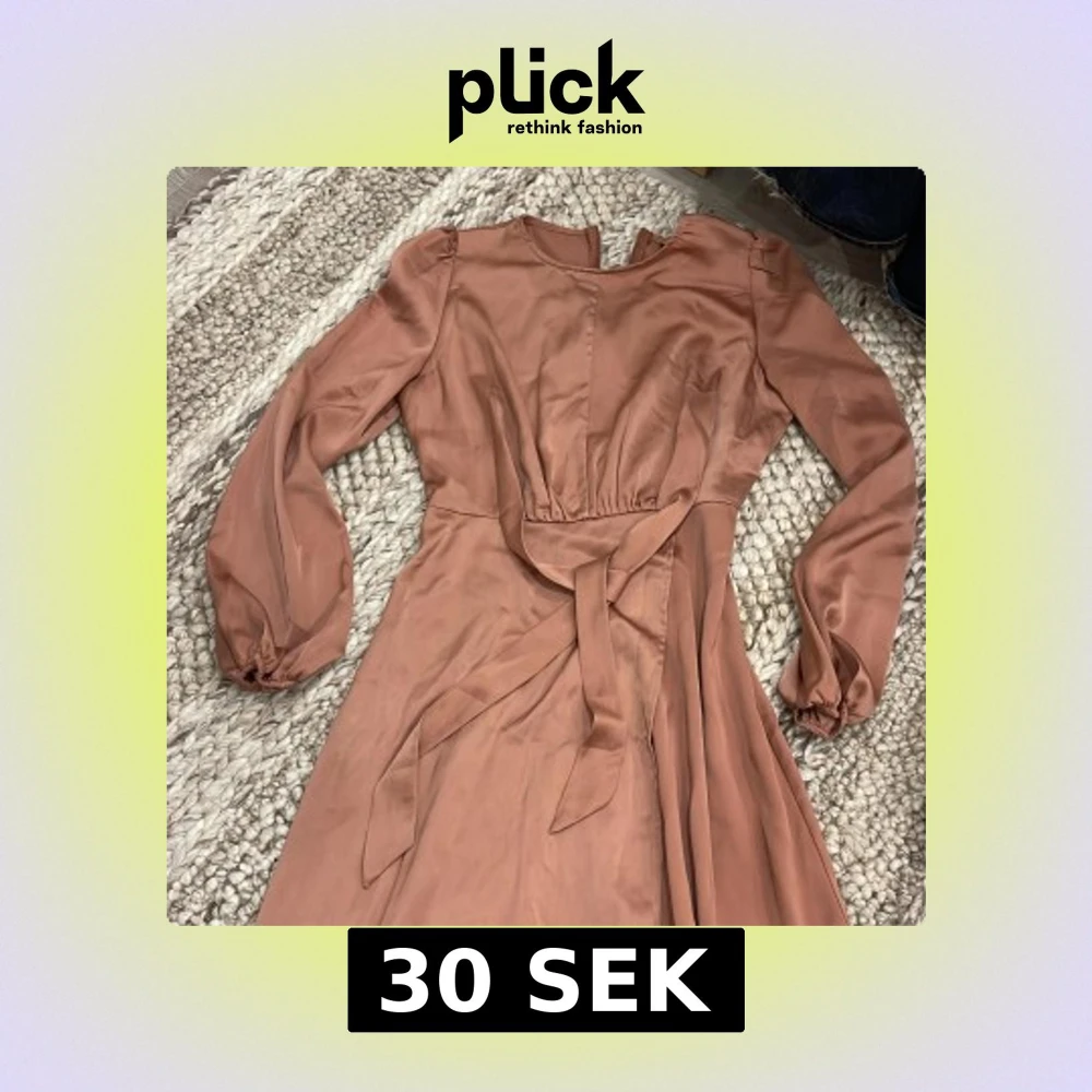 Supersnygg rostbrun/rosa satin långklänning från SHEIN med långa ärmar, knytband i midjan och lätt omlott framtill. Stängs med dragkedja i ryggen. Storlek S