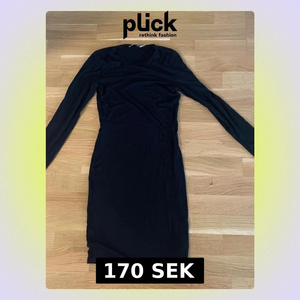 En svart, ribbad klänning med lång ärm och rund hals. Klänningen är kroppsnära och har en kort längd, vilket ger en stilren och enkel look. Perfekt för dig som gillar minimalistisk stil.