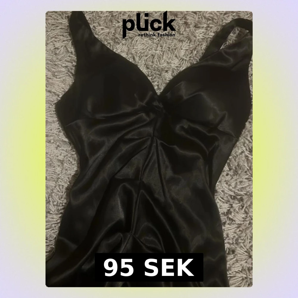 Snygg svart klänning i satin med v-ringad hals. Klänningen har en figurnära passform och ett elegant, glansigt material som ger en lyxig känsla. Perfekt för dig som vill sticka ut med en stilren look.