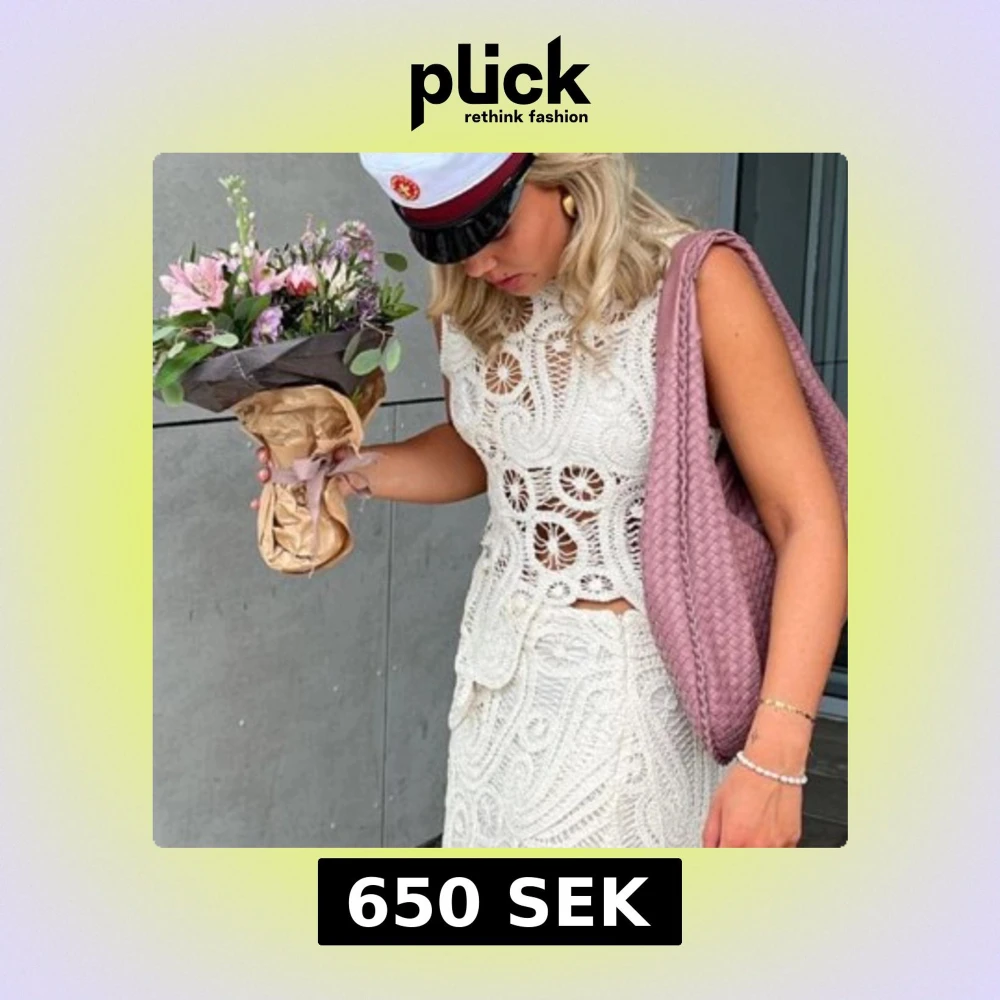 Säljer en superfin vit klänning i två delar med vackert spetsmönster och genombrutna detaljer. Toppen är ärmlös och kjolen är lång, perfekt för student eller sommarens festligheter. Klänningen har en unik och bohemisk känsla. Skriv gärna prisförslag !!