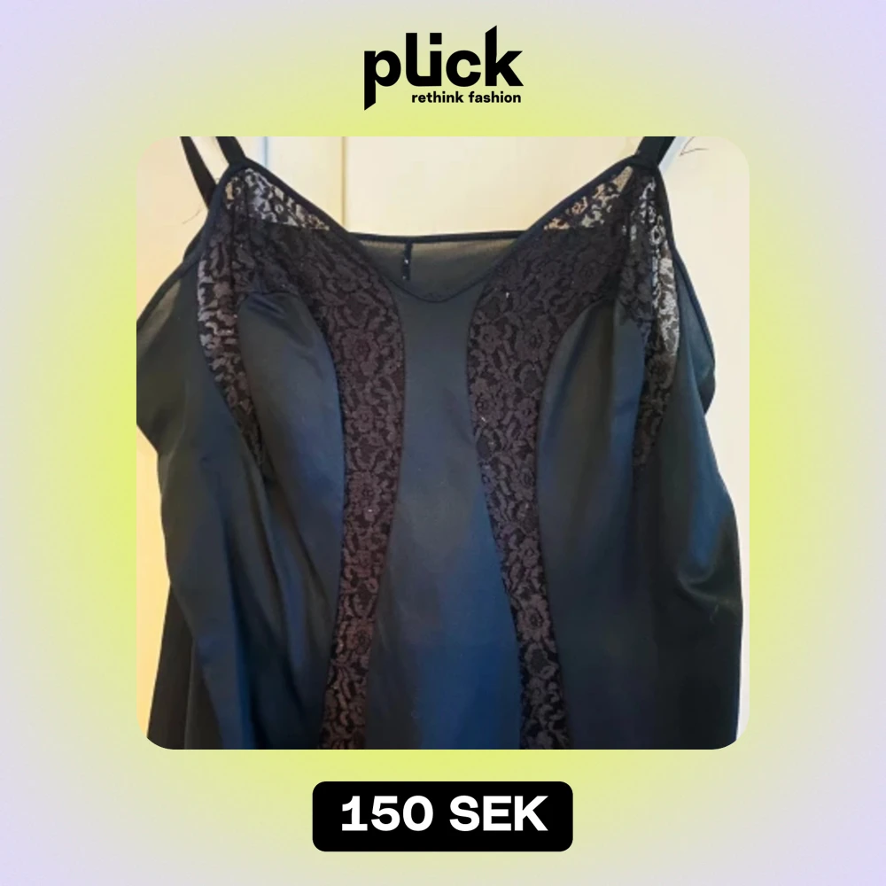 Snygg silkig klänning med spetsdetalj och justerbara axelband