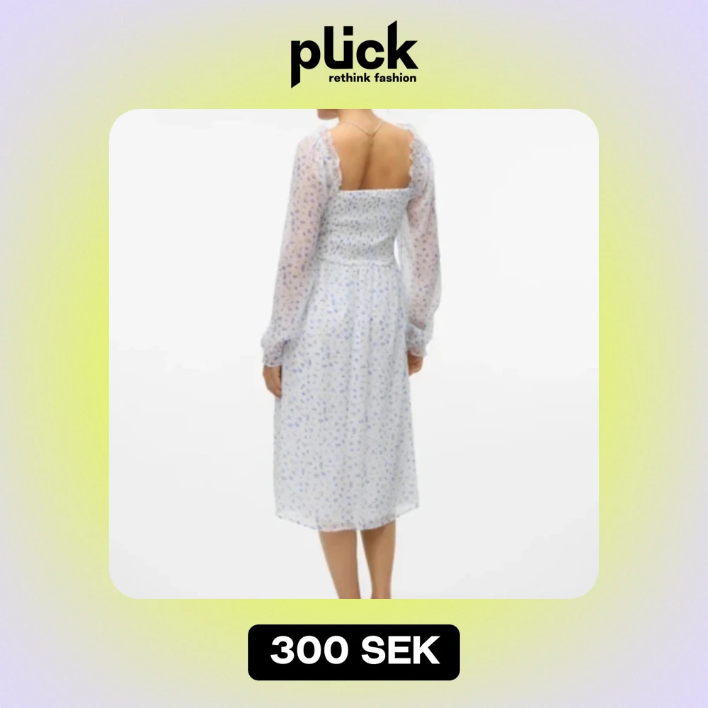 Mellanlång vit sommarklänning med blå blommor. Köpt på Vero Moda. Storlek S. Använd 3 gånger. Jätte söt klänning till sommaren, har själv köpt likadan i annan storlek😊🌸