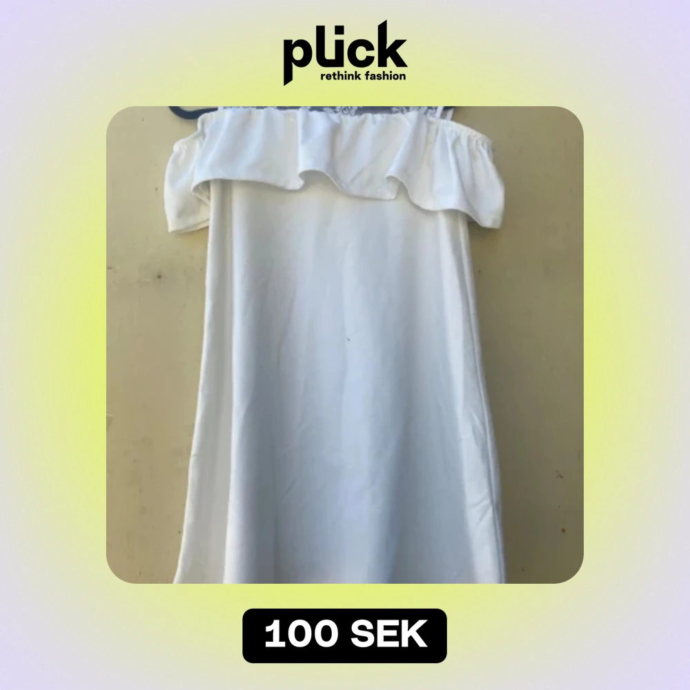 Säljer en superfin vit klänning från Holly & Whyte by Lindex. Den har en offshoulder-stil med volangdetaljer upptill. Perfekt för sommarens alla fester eller en härlig dag på stan. Klänningen är i nyskick och har en luftig passform.