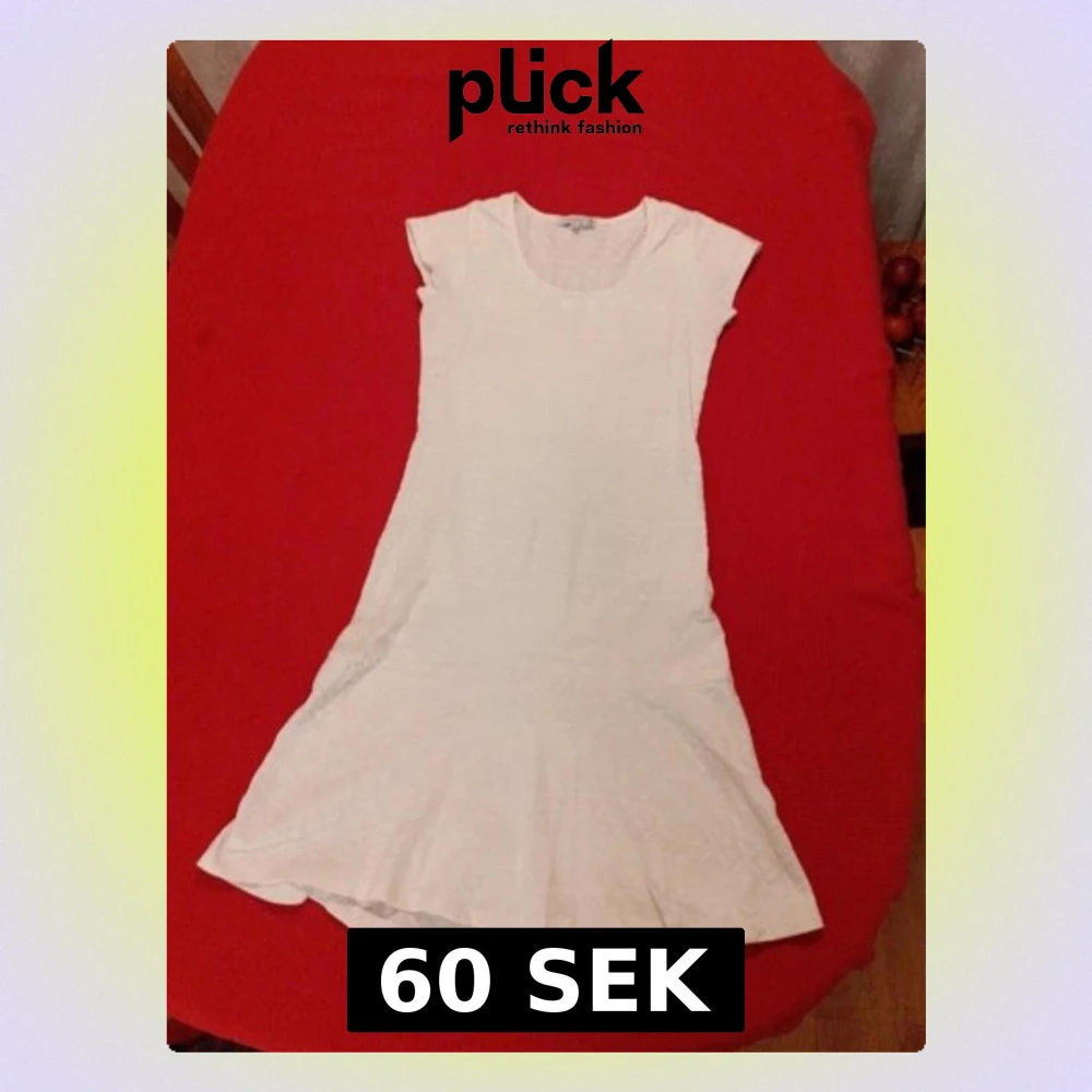 Säljer en vit kortklänning med diskret invävt mönster. Klänningen har rund halsringning och korta ärmar. Materialet känns mjukt och lätt, perfekt för varmare dagar. Enkel och stilren design som är lätt att matcha.
