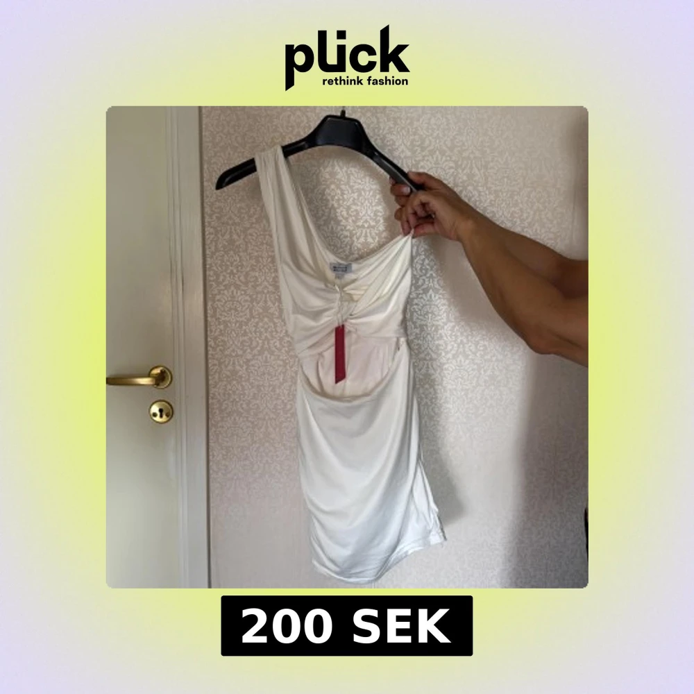 Säljer en vit klänning med one shoulder och cut out i magen, den går även att knyta i ryggen till en rosett. Prislappen är kvar. Den är från en australiensk sida så den har storlek 6 som jag skulle tycka motsvarar 34-36, den kostade 600 från början 💕💕