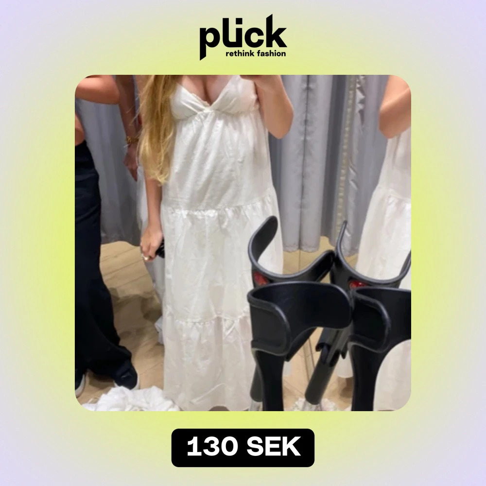 Vit långklänning med volanger - Lång klänning som passar perfekt för midsommar! Använde förra året och fick så många komplimanger🥹 endast använd en gång! Nypris 1400kr