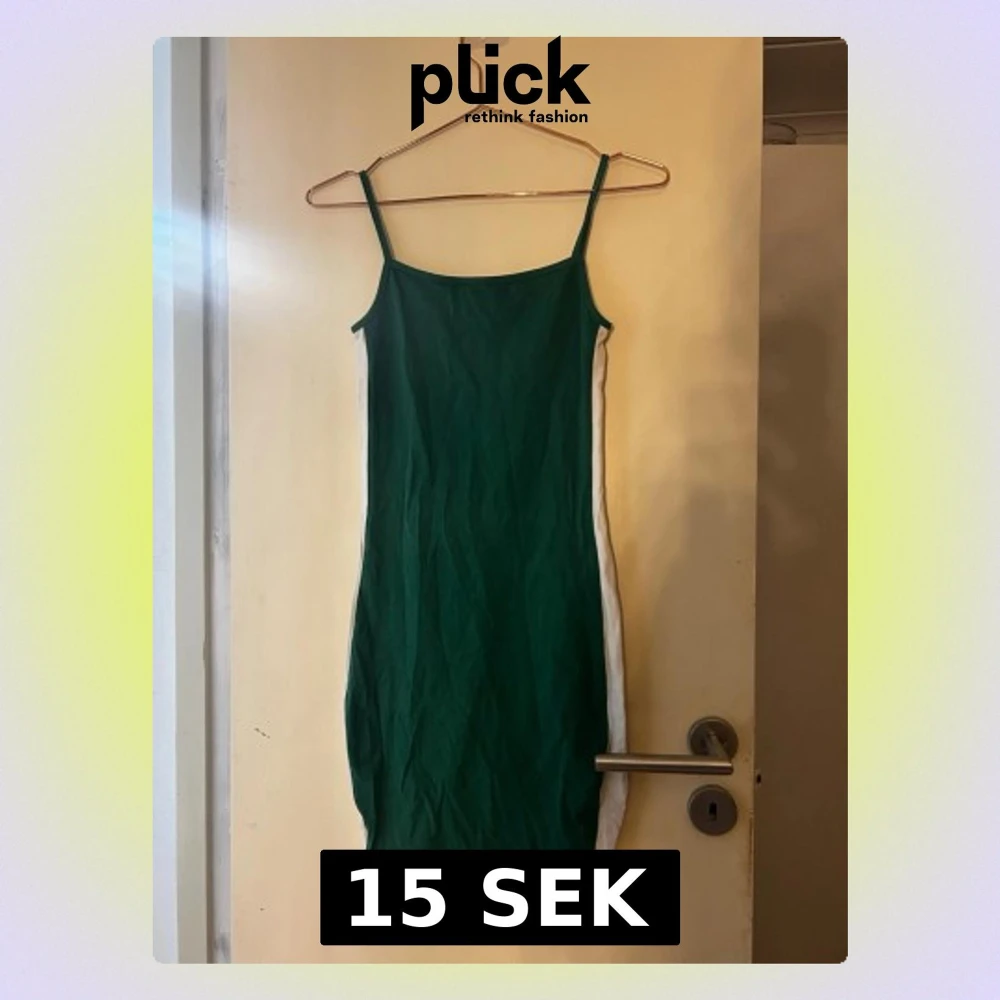 Snygg grön klänning med vita paneler längs sidorna och smala axelband. Tight passform och kort längd, perfekt för en trendig look. Materialet känns mjukt och stretchigt.