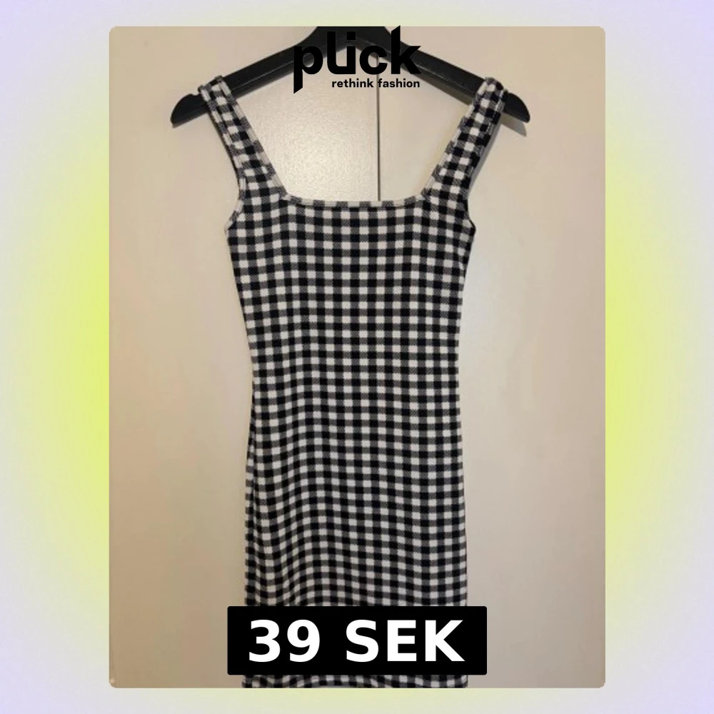Säljer en oanvänd snygg ärmlös klänning med svartvitt rutigt mönster. Klänningen har breda axelband.