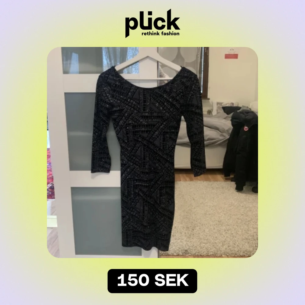 Ungefär knälång klänning ( jag är 1,58cm) Skönt och annorlunda material Vill bli av med den snabbt tror jag använt den två gånger