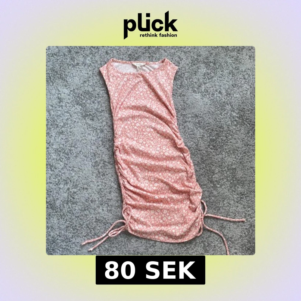 Supersöt rosa kortklänning med vitt blommönster och snörning i sidorna. Ärmlös modell med rund halsringning och dragsko som gör att du kan justera längden. Perfekt för varma dagar och ger en fräsch och ungdomlig vibe.