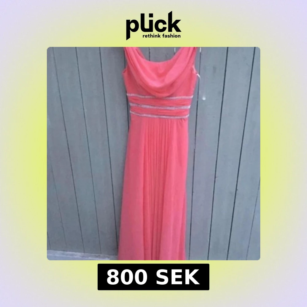 Elegant korallfärgad långklänning med glittriga band i midjan. Klänningen har en draperad halslinje och är ärmlös, vilket ger en stilren look. Perfekt för speciella tillfällen.finns i norsborg botkyrka