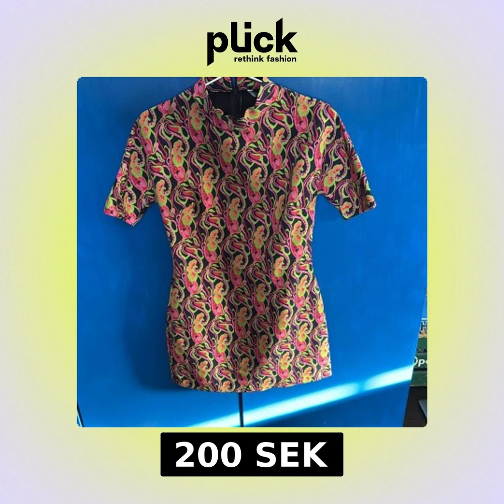 Säljer en färgglad kortklänning från Zara med ett livligt mönster i rosa, gul och svart. Klänningen har korta ärmar och en dragkedja i ryggen. Oanvänd och lappen är kvar från Sellpy. Den är så snygg men passade mig inte riktigt✨