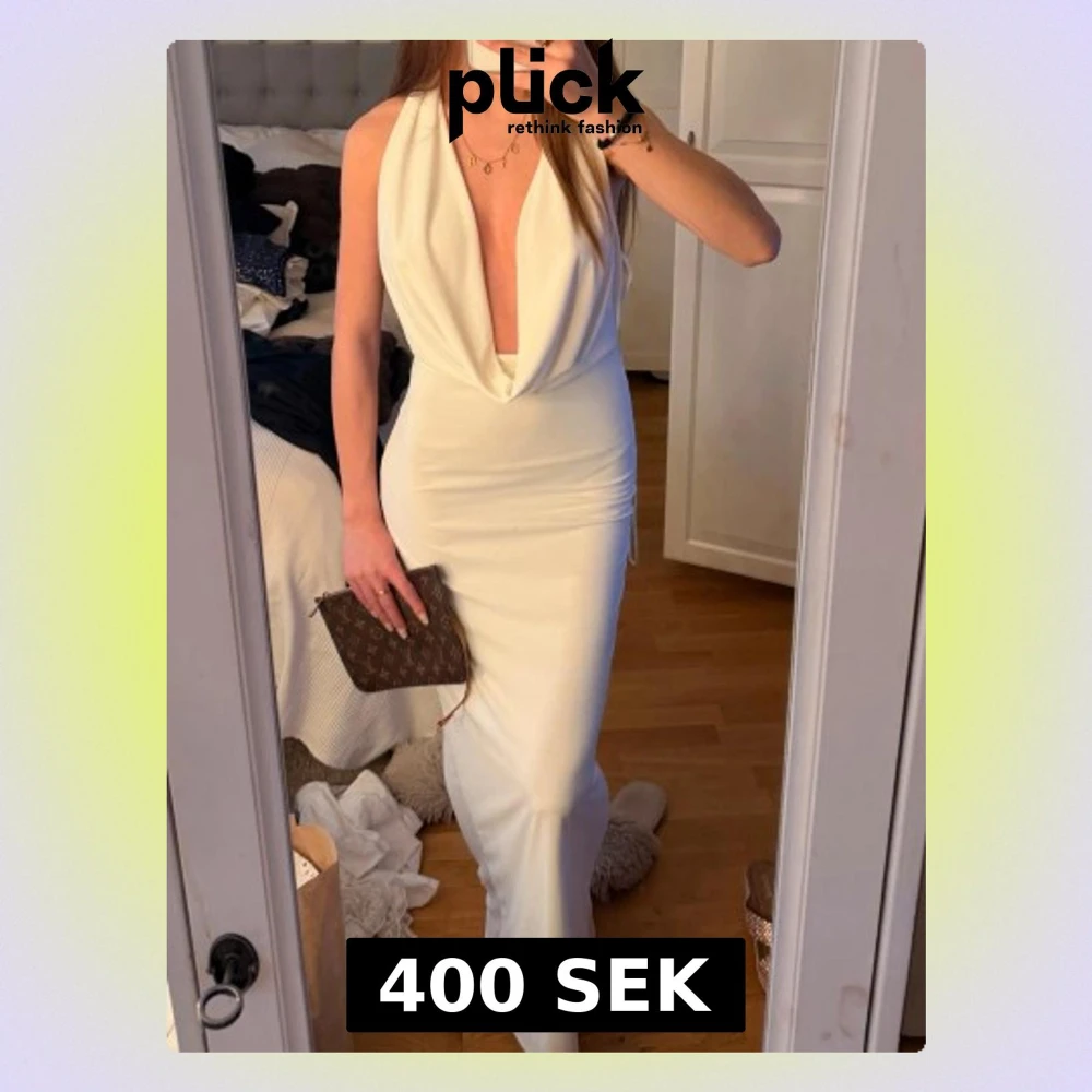 Vit långklänning med djup urringning - 0 Vit långklänning med djup urringning - 1 Vit långklänning med djup urringning - 2 Vit långklänning med djup urringning - 3