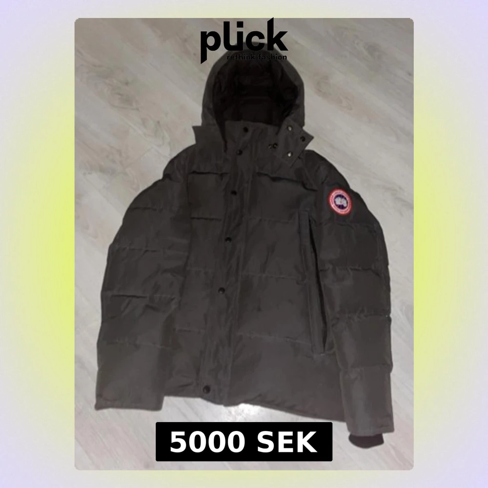 Säljer en svart dunjacka från Canada Goose med klassisk patch på ärmen. Jackan har huva, dragkedja och knappar framtill samt en stor ficka på bröstet. Perfekt för kalla vinterdagar och riktigt varm tack vare dunfyllningen.