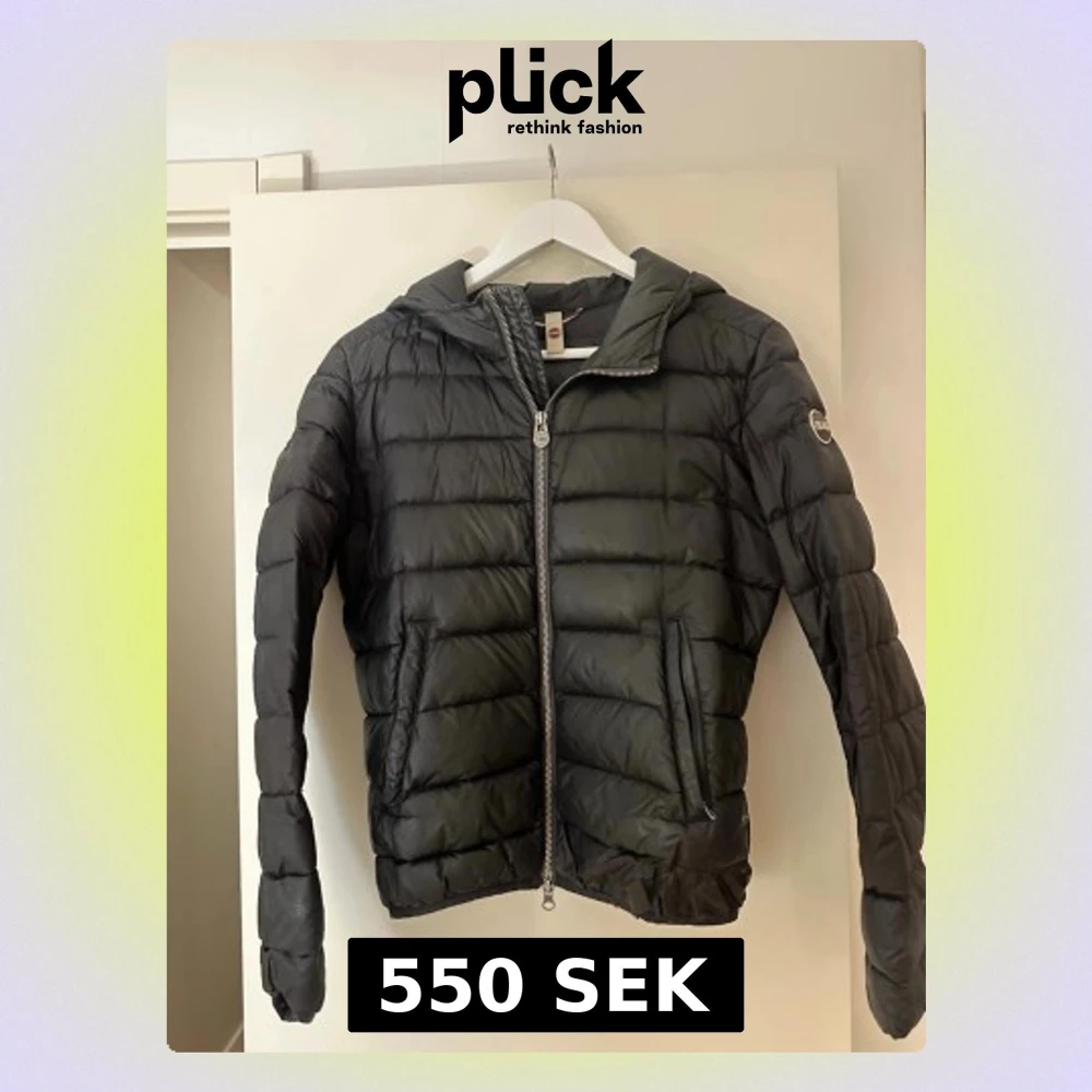 Snygg svart jacka från Colmar med huva och dragkedja framtill. Jackan har två sidofickor med dragkedja (ena är dock trasig, inget som syns) och Colmar-logga på ärmen.