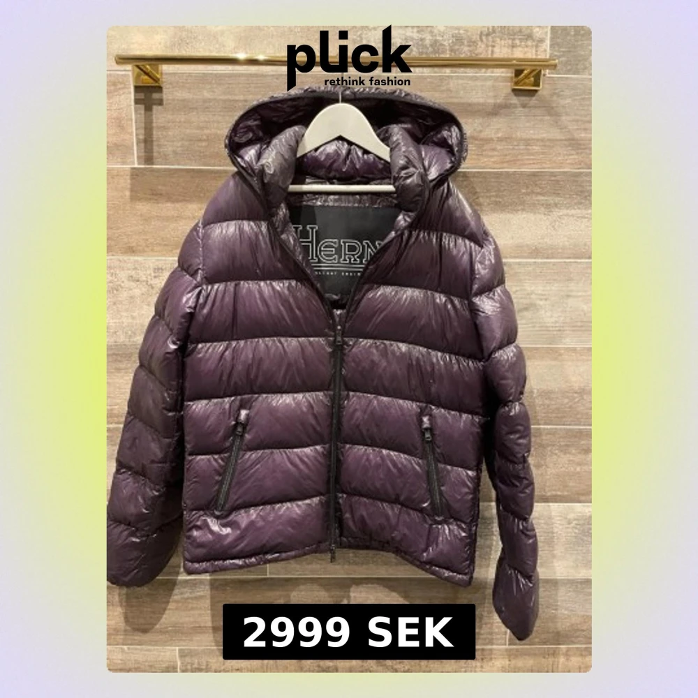 Snygg lila dunjacka från Herno med glansig finish och horisontella sömmar. Jackan har två dragkedjeförsedda fickor framtill, huva och dragkedja hela vägen upp. Perfekt för kalla vinterdagar och riktigt lätt att bära.