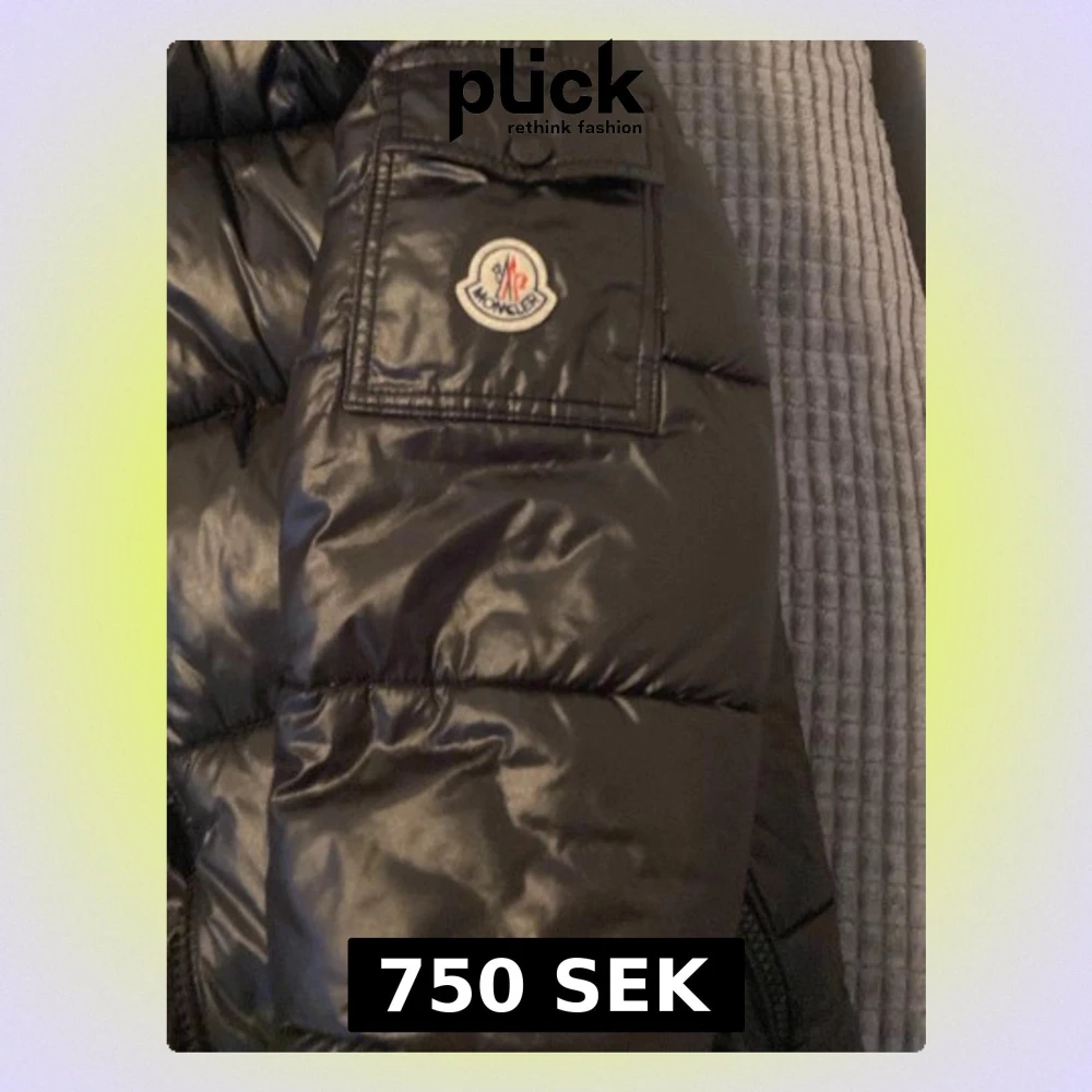 Snygg svart dunjacka från Moncler med glansig finish och klassisk logotyp på ärmen. Jackan har en ficka med knapp på ärmen och quiltad design som håller värmen under kalla dagar. Perfekt för dig som vill ha både stil och funktion.