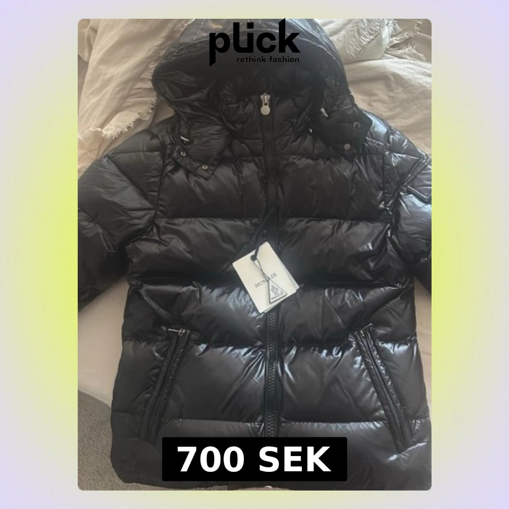 Svart dunjacka från Moncler - Snygg svart dunjacka från Moncler med glansig finish, huva och två dragkedjeförsedda fickor framtill. Jackan har quiltad design och Moncler-logga på armen. Storlek 1 jag tycker den sitter som xs.pris kan diskuteras