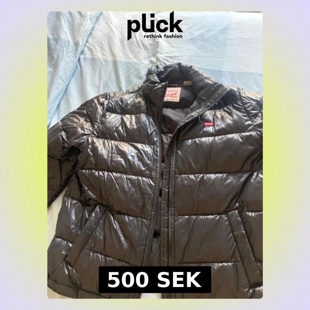 Snygg svart dunjacka från Levi's med glansig finish och klassisk quiltad design. Jackan har ståkrage, dragkedja framtill och två sidofickor. Perfekt för kalla vinterdagar och riktigt skön att bära.
