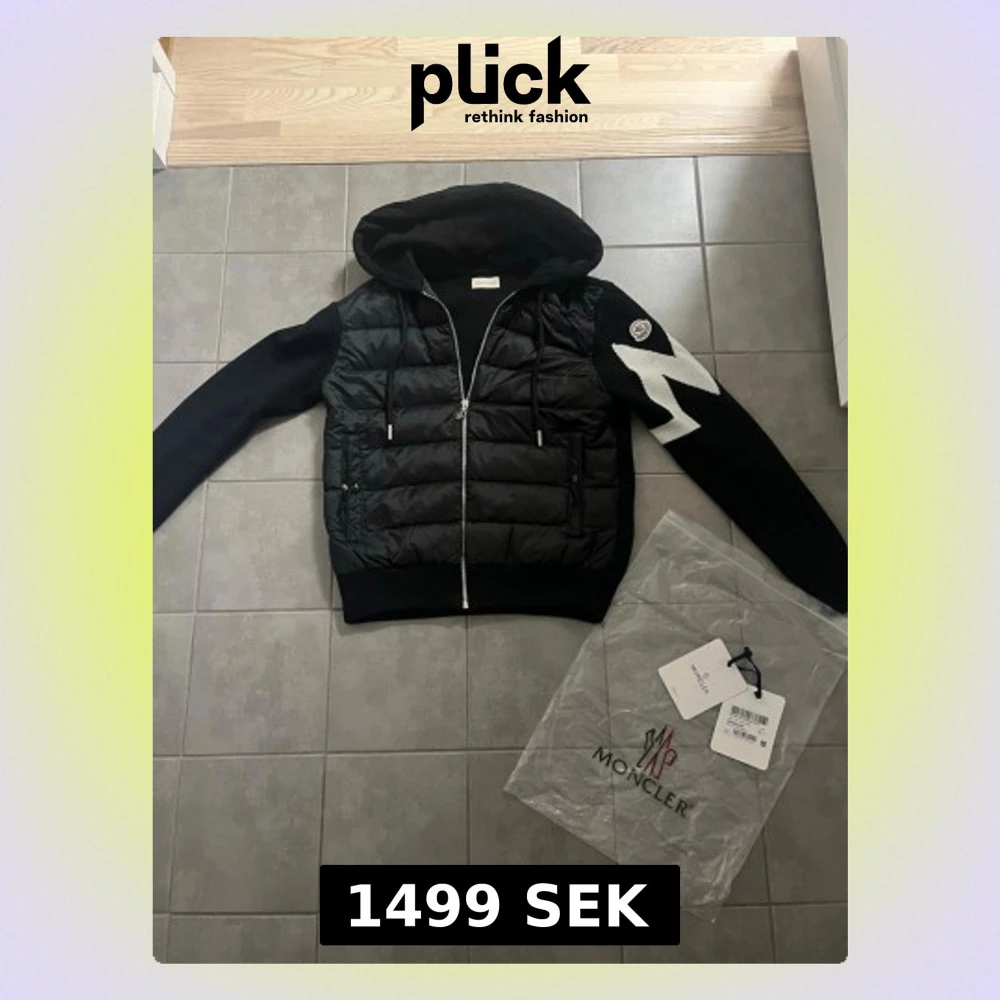 Säljer en sprillans ny jacka då jag bara har testat den, anledningen för jag säljer den är för att det var fel storlek. Som sagt är jackan i nytt skick med etikett och påse då det medföljer skicket på jackan är 10/10 och är perfekt för våren som är runt hörnet då denna jacka ska bäras. Storleken på denna jackan är liten som Moncler i sig har små storlekar skulle säga att den sitter som xs och en liten s för att den ska kunna sitta bra. Skriv för funderingar. Scan innanför jackan och på loggan