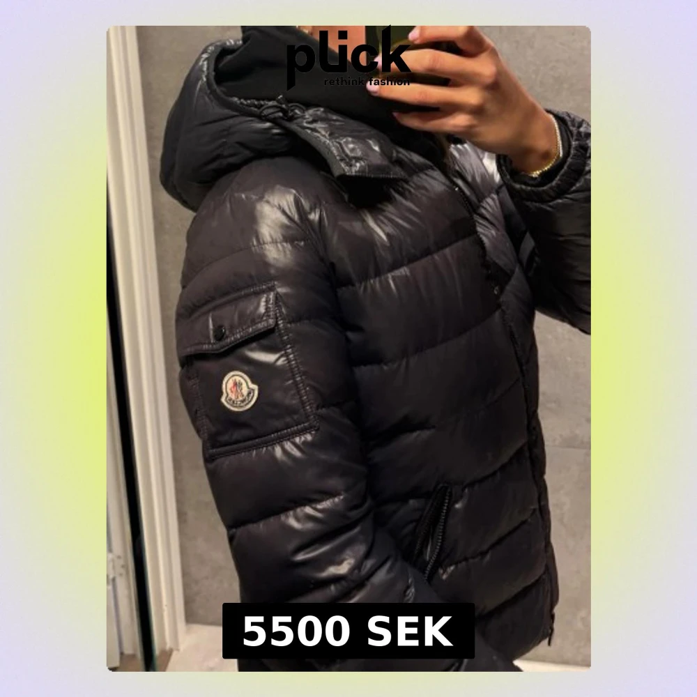 Mörkblå Moncler Bady vinter jacka. Storlek 4 som passar storlek S något tight på mig jag är S/M. Passar M om du har mindre byst. Jackan kom från vestiaire collective och då kom den utan cartoone. Jackan har en defekt på armbågen se sista bilden. Pris kan diskuteras.