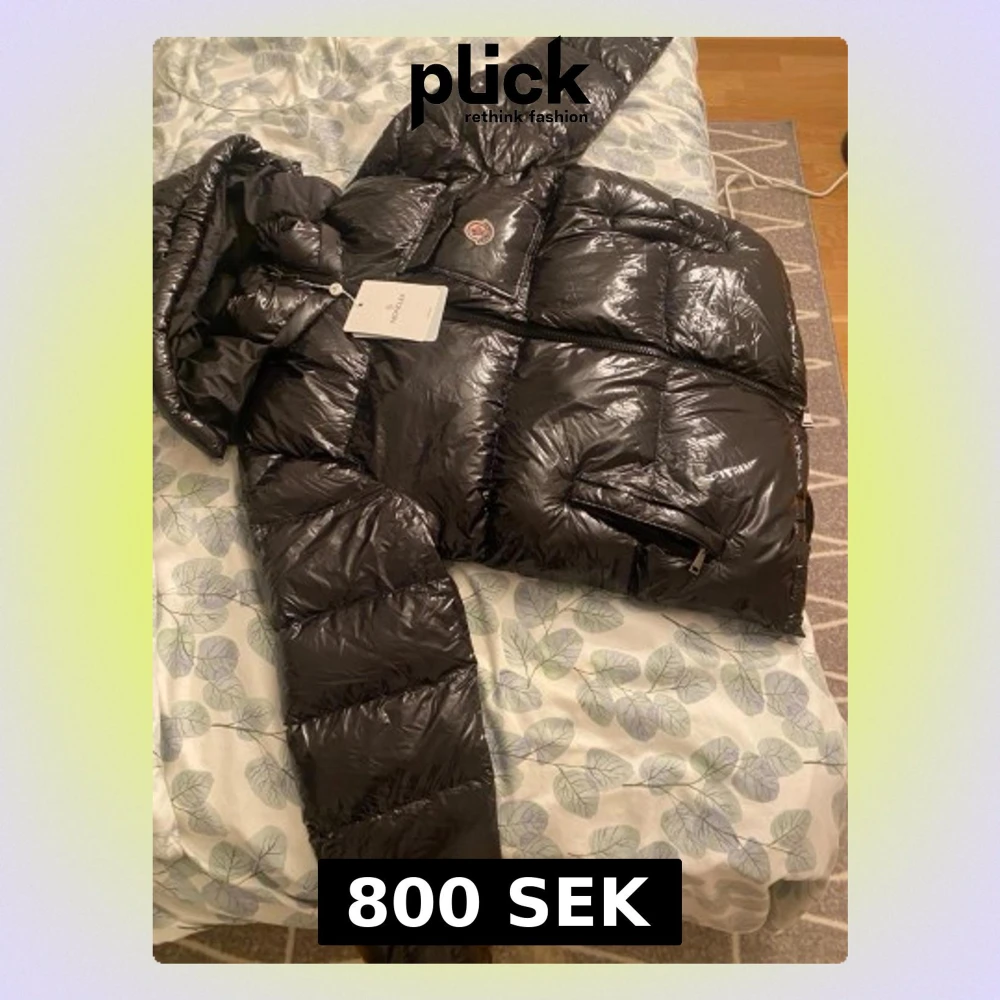 Säljer en svart glansig dunjacka från Moncler med huva och dragkedja framtill. Jackan har två sidofickor med dragkedja och Moncler-logga på bröstet. Perfekt för kalla vinterdagar och riktigt snygg streetstil. jacka är helt ny