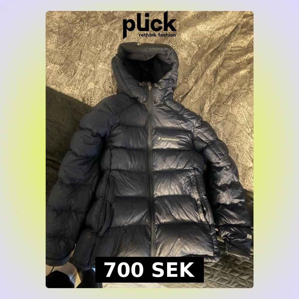 Snygg mörkblå dunjacka från Peak Performance med huva och dragkedja framtill. Jackan har två sidofickor och en bröstficka med logga. Puffig modell som håller dig varm under kalla dagar. Perfekt för vinter och outdoor.