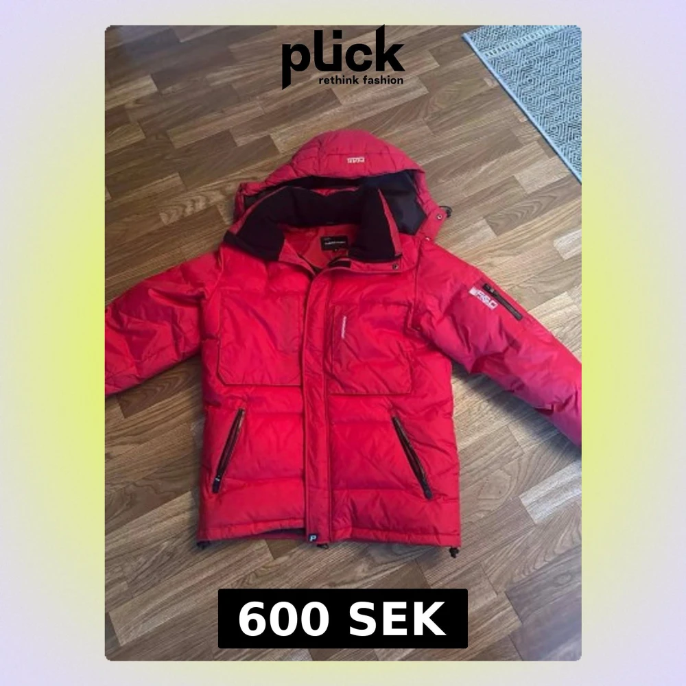 Snygg röd dunjacka från Peak Performance ( äldre model) väldigt bra skick då den aldrig ens är använd . Avtagbar huva och svarta detaljer. Flera stora fickor, broderad logga på ärmen och hög krage. Perfekt för kalla vinterdagar och riktigt varm.