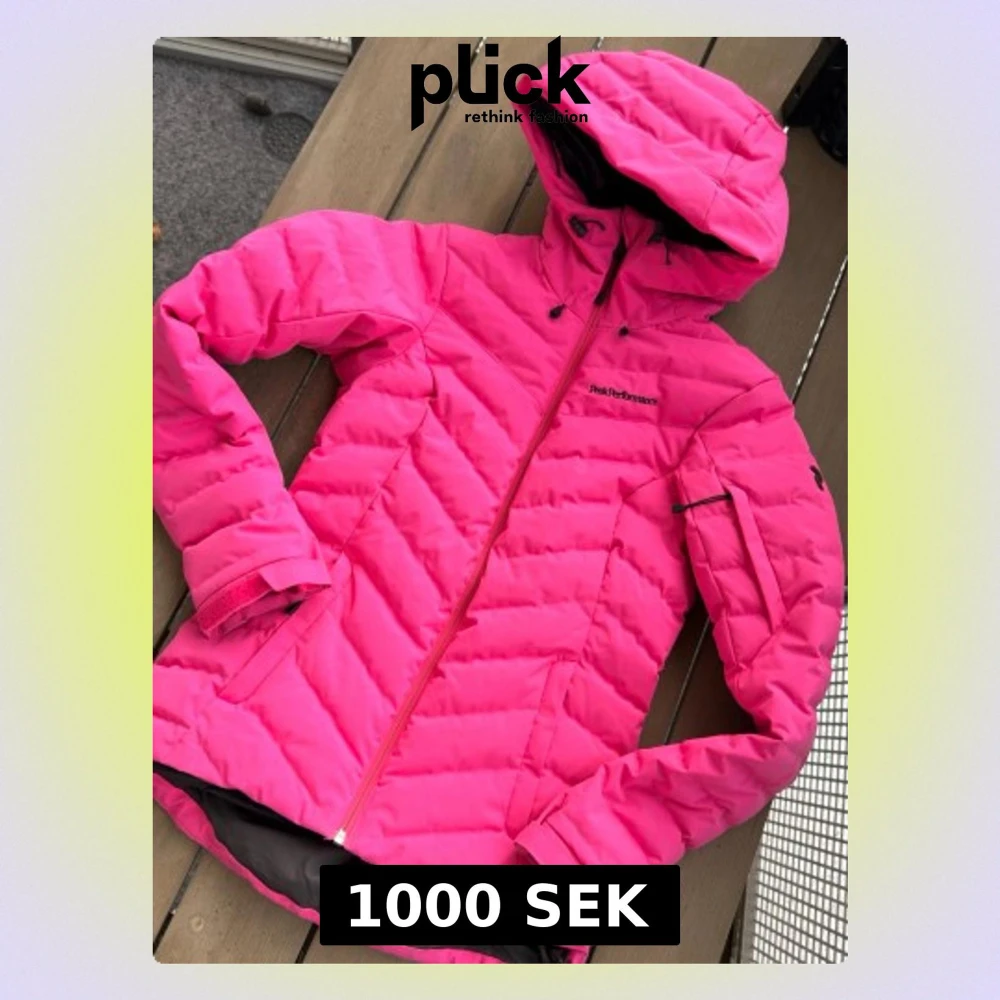 Snygg och varm rosa dunjacka från Peak Performance med huva och dragkedja. Jackan har flera fickor, justerbar huva och klassisk quiltad design. Perfekt för kalla vinterdagar och riktigt skön att bära. Fint skick. Använd endast 2 gånger. Nypris ca 3500 kr . Storlek XS