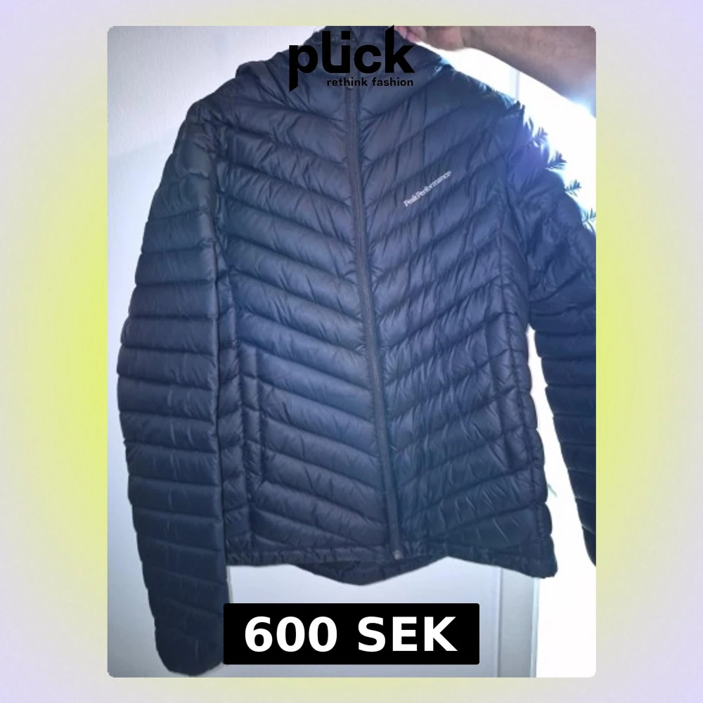 Snygg svart dunjacka från Peak Performance med dragkedja framtill och diskret logga på bröstet. Jackan har en quiltad design med horisontella och sneda sömmar som ger en modern look. Perfekt för kalla vinterdagar och enkel att matcha med olika outfits.