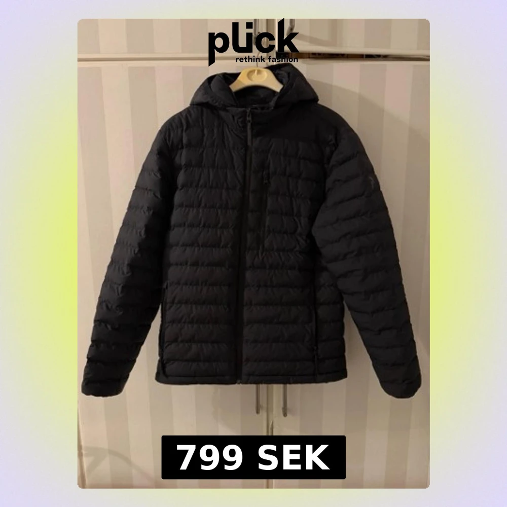 Svart dunjacka från Peak Performance - Snygg svart dunjacka från Peak Performance med huva och dragkedja framtill. Jackan har quiltad design, diskret logga på bröstet och en ficka på ärmen. Perfekt för kalla vinterdagar och riktigt skön att bära. Dragkedjan är inte så bra nästan att den behövs byta