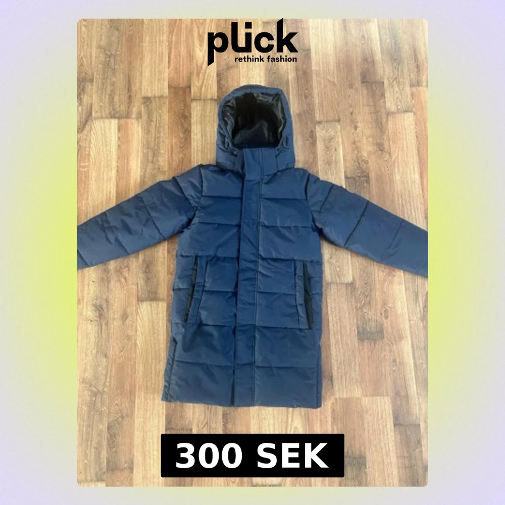 Snygg mörkblå dunjacka från Only & Sons med huva och raka, quiltade paneler. Jackan har två svarta dragkedjefickor framtill och en hög krage som skyddar mot kyla. Perfekt för kalla vinterdagar och har en stilren, lång modell. Nytt skick