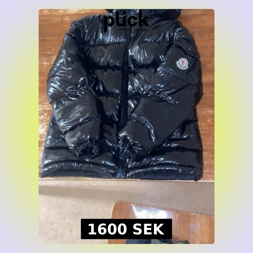 Säljer en svart glansig dunjacka från Moncler med huva och dragkedja framtill. Jackan har puffig design, elastiska muddar och Moncler-logga på ärmen. Perfekt för kalla vinterdagar och riktigt snygg streetstil.