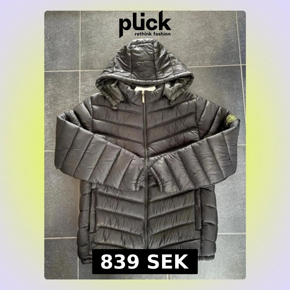 En clesn svart dunjacka från Stone Island med huva och dragkedja framtill. Jackan har quiltad design, två sidofickor och klassisk logotyp på ärmen. Perfekt för kyliga dagar och enkel att matcha med olika outfits.