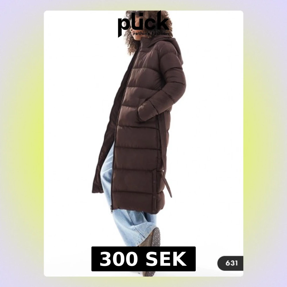 Lång brun dunjacka med huva