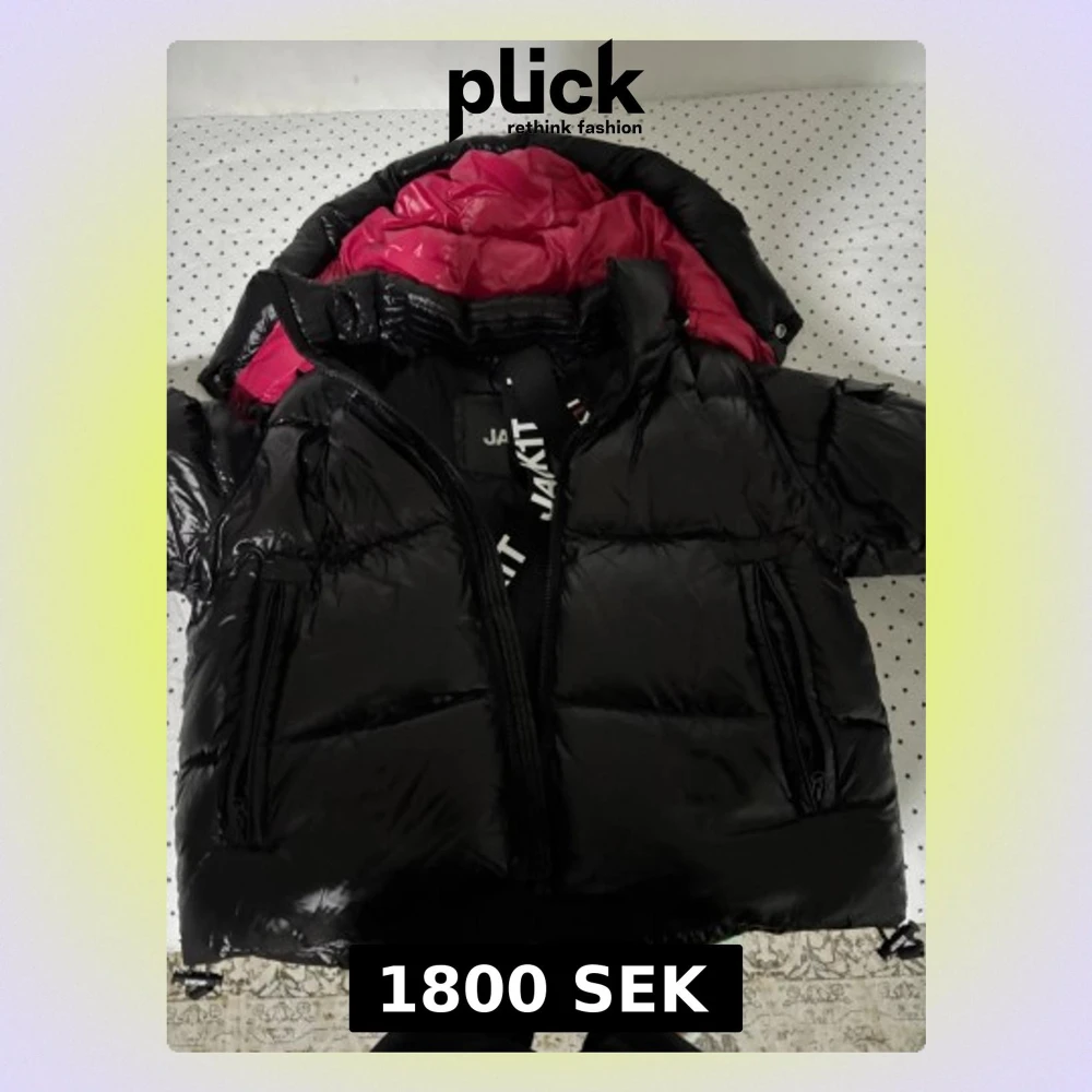 Snygg svart dunjacka från JAKT med glansig finish och kontrasterande mörkrosa foder. Jag köpte jackan för 2500 nypris och säljer den för detta priset. Vid snabbköp var gärna säkra och prisförslag är alltid välkomna