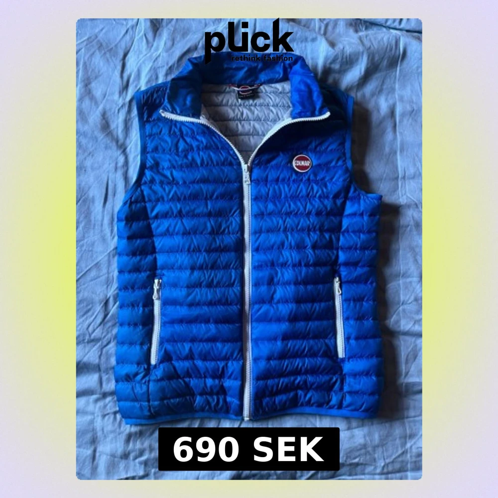 Snygg blå dunväst från Colmar med vit dragkedja och två fickor framtill. Västen har quiltad design och står ut med sitt klassiska Colmar-märke på bröstet. Perfekt för lager-på-lager och ger en sportig vibe till din outfit.