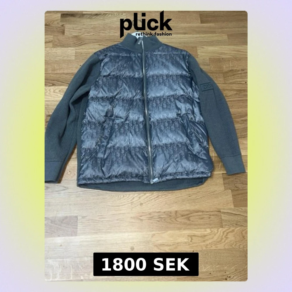 Snygg grå dunväst från Dior med ikoniskt monogram-mönster på framsidan och stickade ärmar. den är strl s den har inga skador eller något sånt den är jätte fin den är använd några gånger bara tar byten beror på vad och pris kan alltid diskuteras