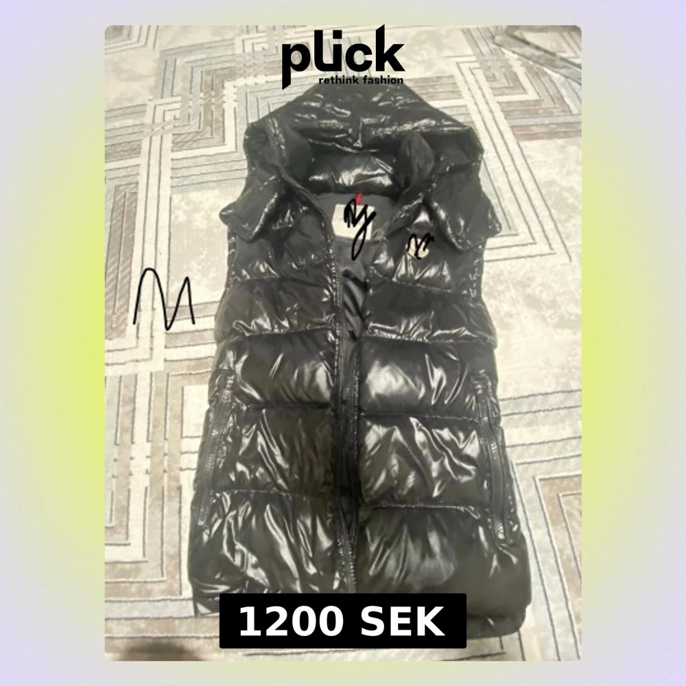 Snygg svart dunväst med glansig finish och huva. Västen har dragkedja framtill och broderad NY-logga på bröstet. Perfekt för lager-på-lager och streetwear-stil.